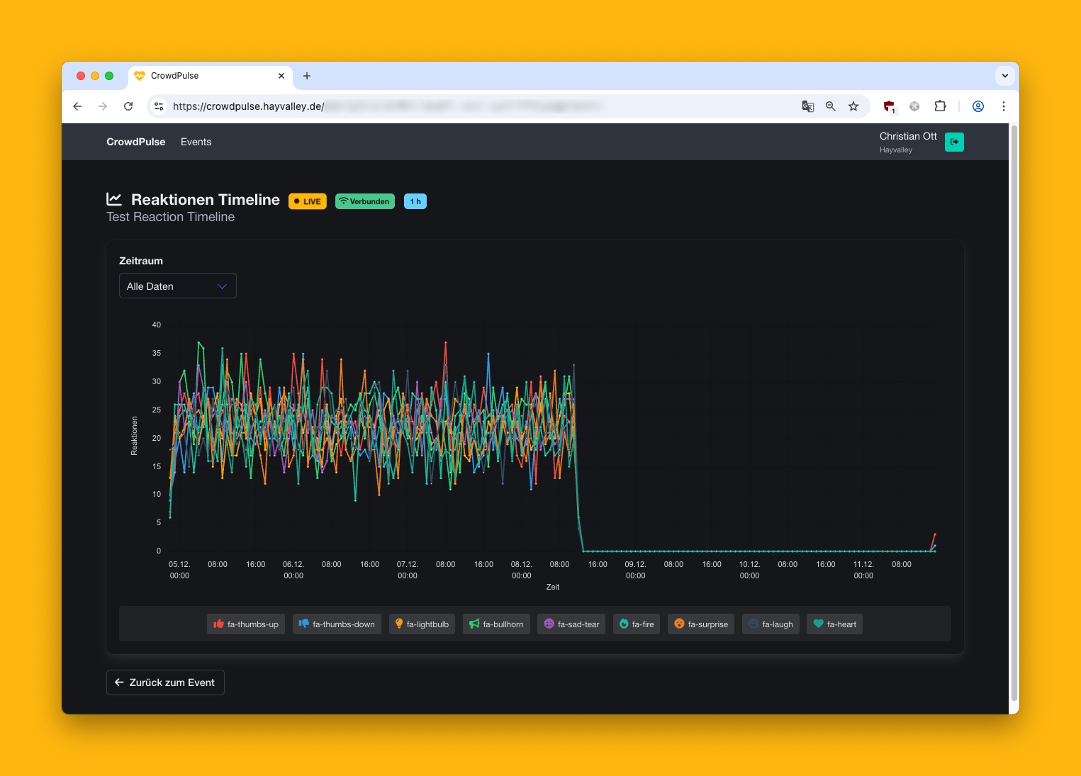 Track reactions over time as a live chart — instantly spot mood shifts and highlights of your event.